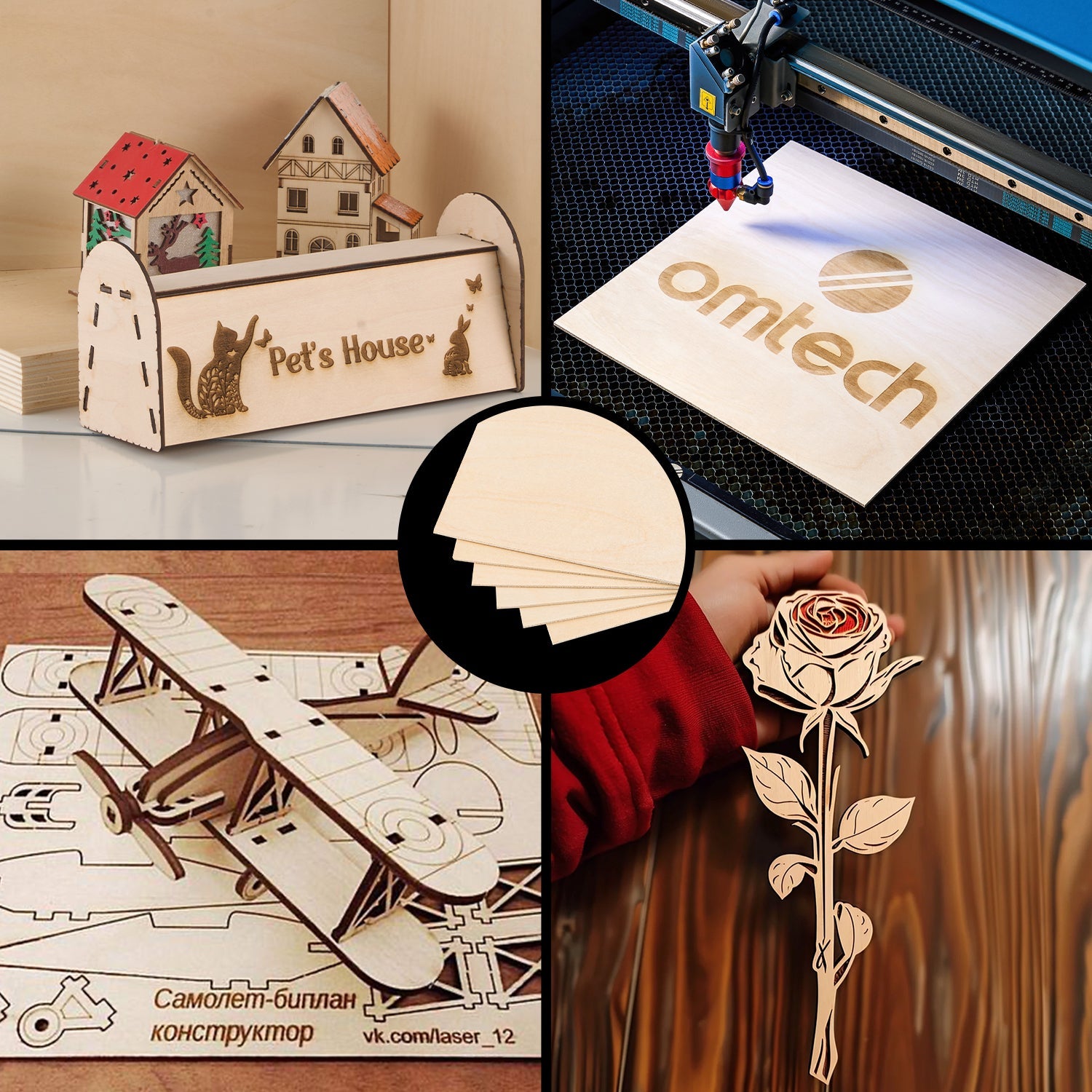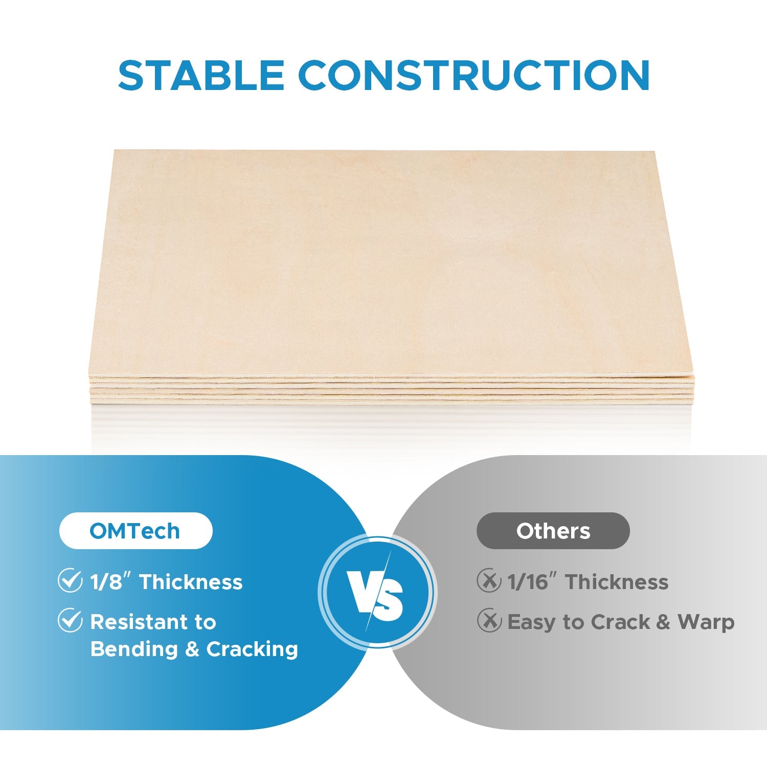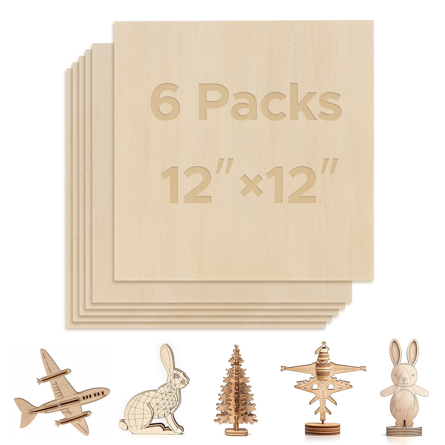 Bring Your Ideas to Boards: Explore endless crafting possibilities with OMTech's 6-pack poplar wood sheets, each measuring 12 x 12 in. Their smooth surface and beautiful grain provide the ideal canvas for your creativity to thrive.